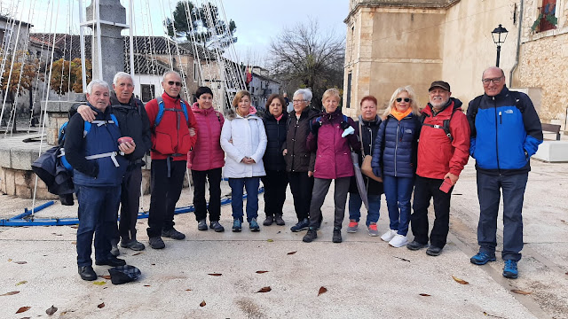 La visita guiada se centró en el Centro de Interpretación, el Palacio y la Iglesia, completándose con un recorrido por las tres plazas más importantes del complejo, la plaza de la Iglesia, la plaza del Mercado y la plaza de las Fiestas. A pesar del cielo amenazante, tuvimos la fortuna de que el tiempo nos permitiera también caminar una parte de la senda de Valmores, con lo cual la jornada resultó completa: naturaleza, historia y arte, ¡qué más se puede pedir! …